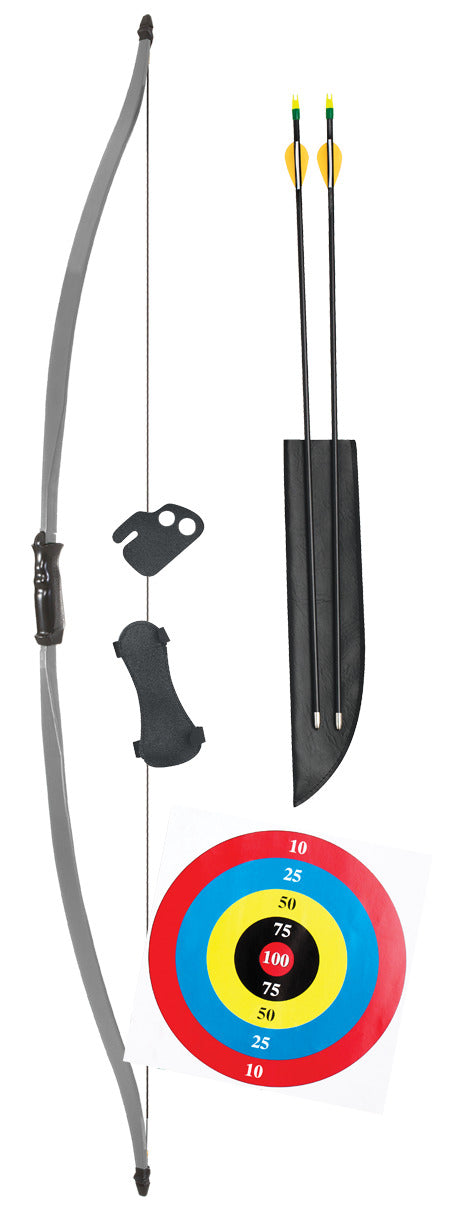 Beginner bow set features ambidextrous riser for left or right hand use
