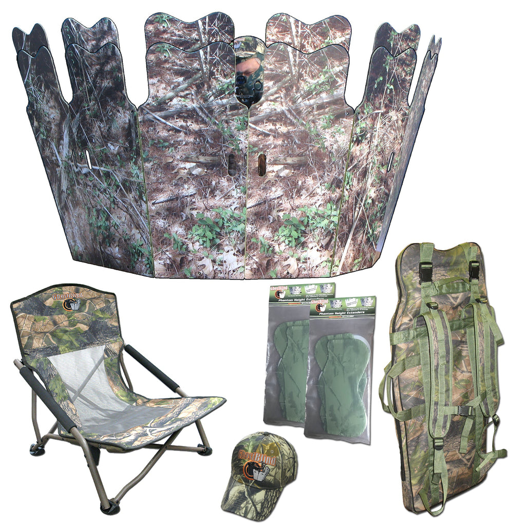 Phantom Reflective Hunting Blind Extreme Bundle: Blind, Chair, Carry Pack, 2 Sets Height Ext, Hat, Carry Strap&TieDowns
