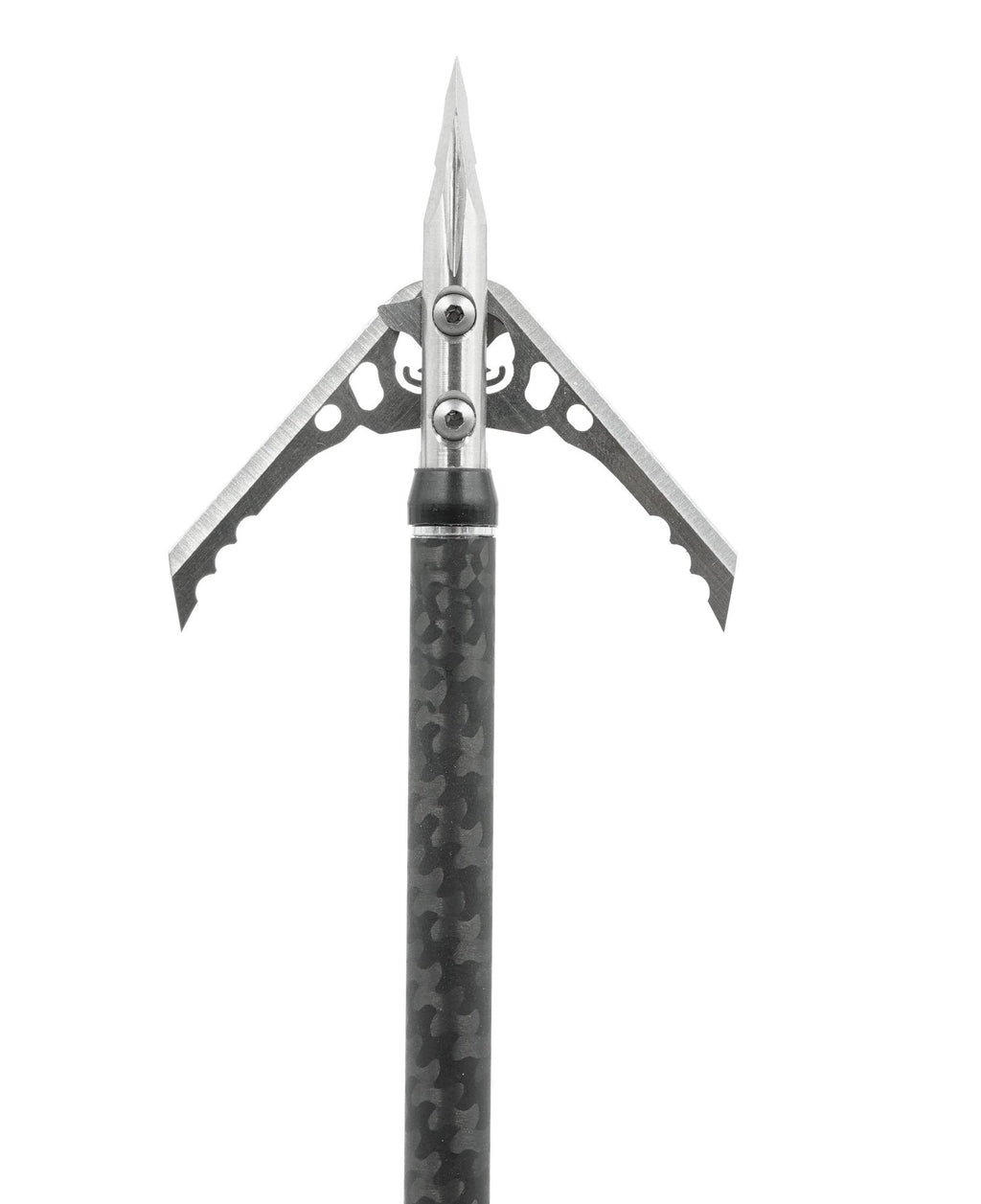 With a 2-inch cutting diameter, the Trypan NC cuts huge entry holes upon impact from the .039-inch-thick razor-sharp machine-stamped blades. Once deployed, the head’s Slip Cam™ design allows the stainless-steel blades to effortlessly slide into an optimized position with perfect attitude for cutting diameter and penetration. The newly incorporated NC (No Collar) technology integrated blade containment system utilizes cutting-edge finger-like tabs on the blades’ pivot point to “anchor” the blades in place while in the closed position. This technology completely eliminates the need for a Shock Collar, dental band or O-ring, while still providing a 100% reliable blade retention system. With a narrow profile, needle-like titanium ferrule and Ferrule Alignment Technology achievement of field point-like accuracy in flight is second nature, while still offering devastating results upon impact. Rage broadheads have become famous for their reliability and ability to put game down fast; the new Hypodermic Trypan NC delivers on all accounts and will continue to convince even the staunchest of critics they should trust their hunt to Rage.