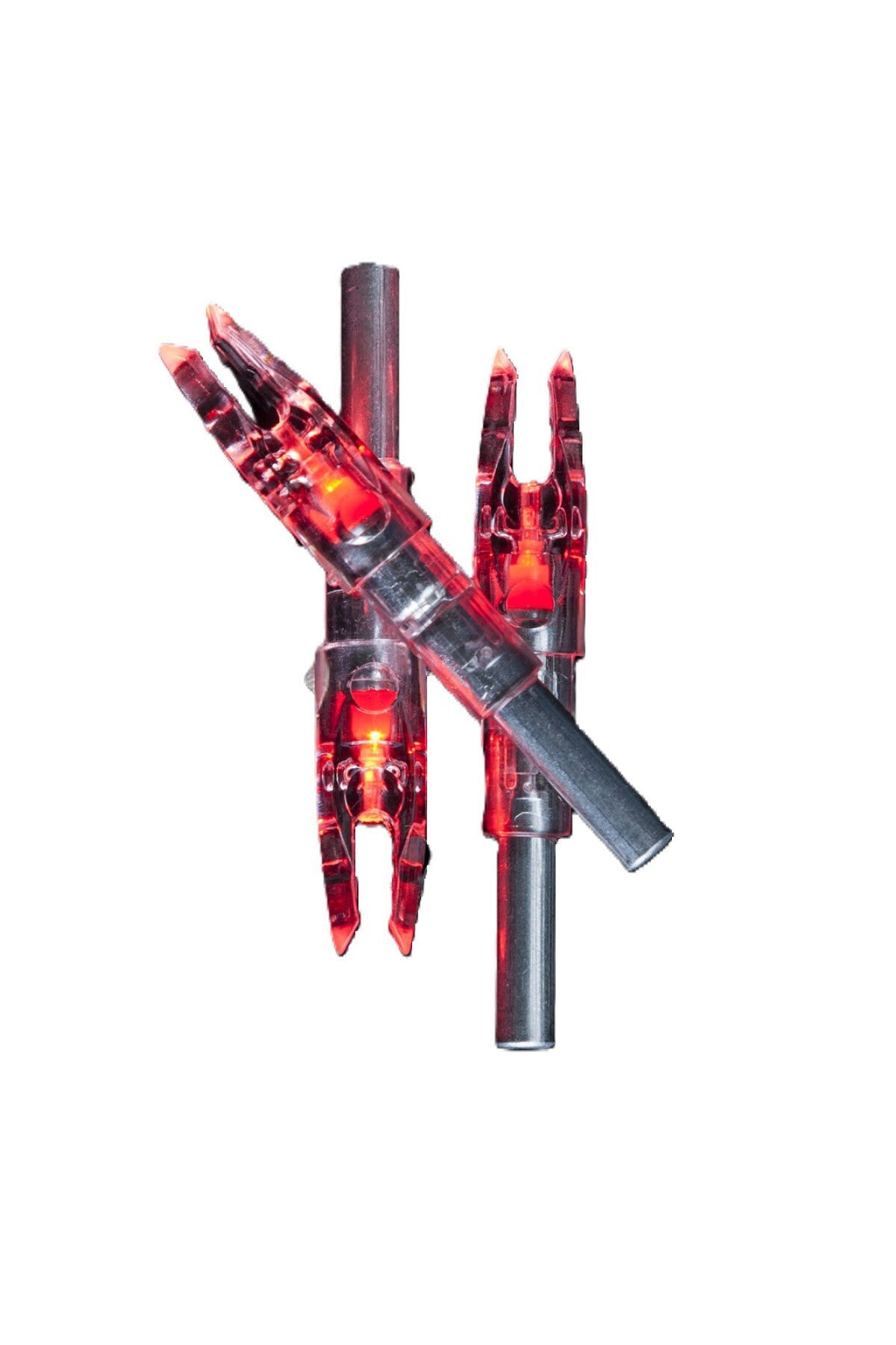 The lighted nocks into most crossbow bolts having an inside diameter of .297-.302. Press fit, no glue required. Weighs 32 grains. Three of the same color in each pack.